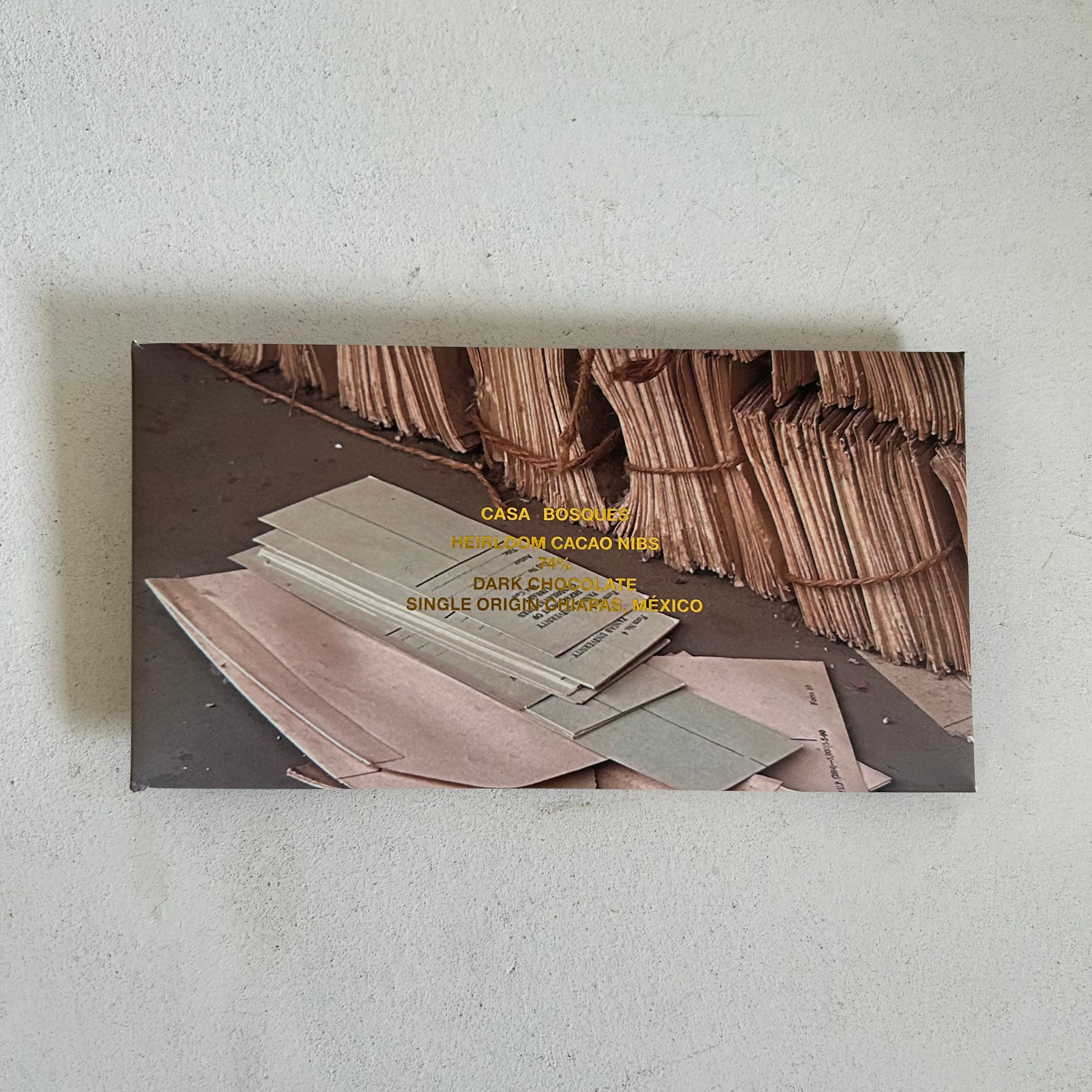 A pure yet layered blend of rich dark chocolate, peppered with raw cacao nibs from the prized Criollo bean. Sourced from a single estate in Chiapas, Mexico.