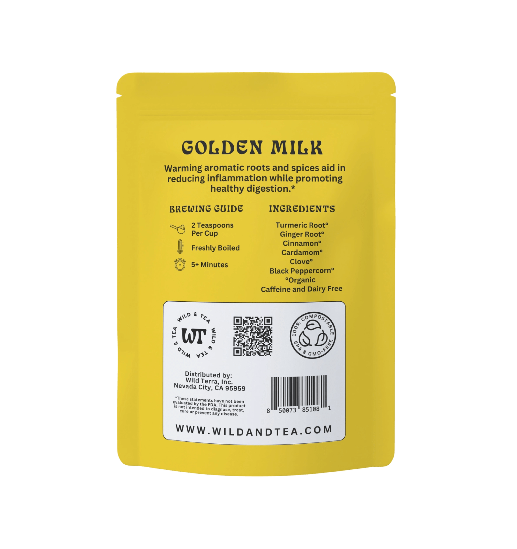 Organic Ingredients- Turmeric, ginger, cinnamon, cardamom, clove and black pepper. Caffeine and dairy free