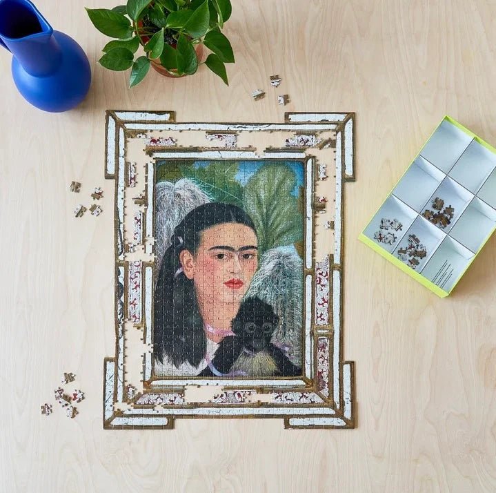 MoMA Exclusive: This 884-piece Frida Kahlo Jigsaw Puzzle features a reproduction of Kahlo’s artwork Fulang-Chang and I (1937), a work in MoMA’s collection. This difficult puzzle is shaped around the unique frame.