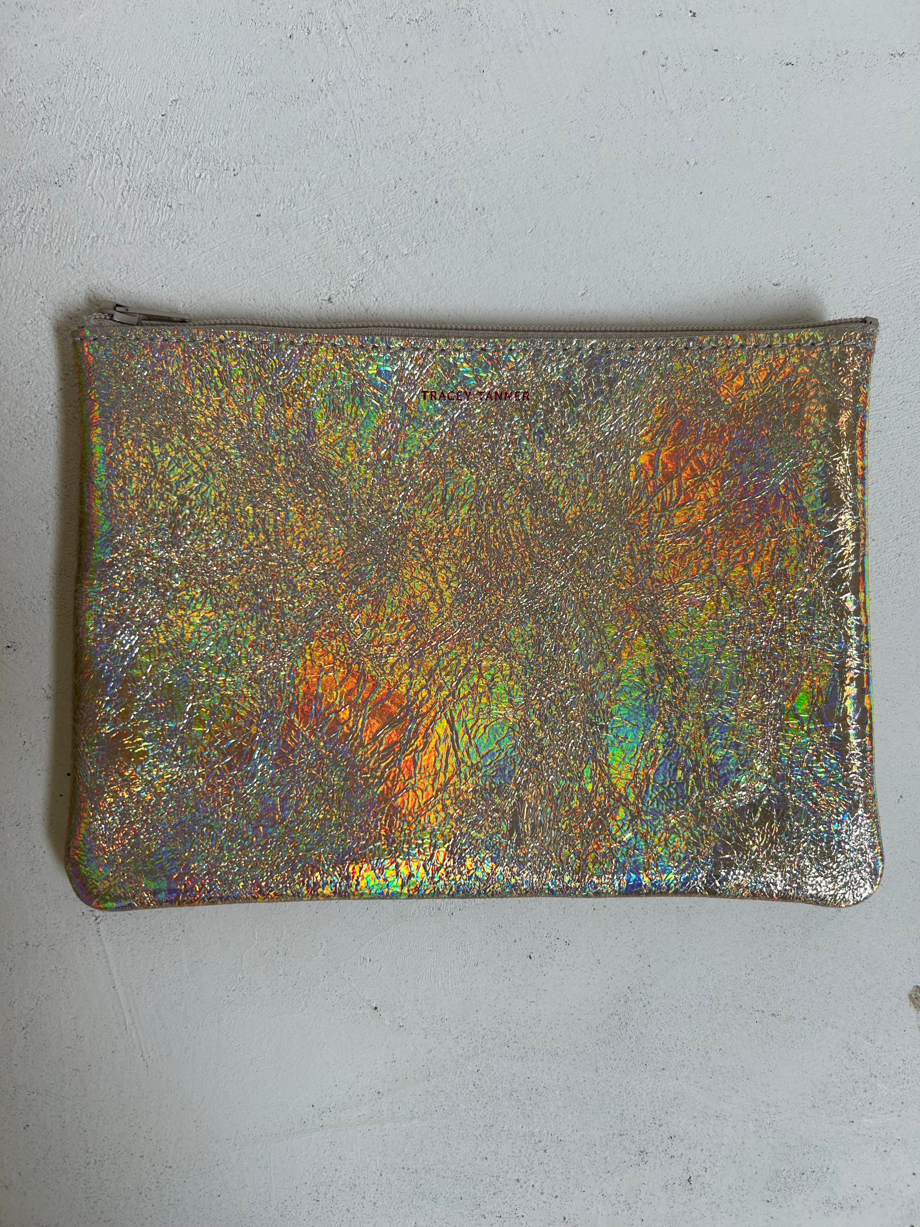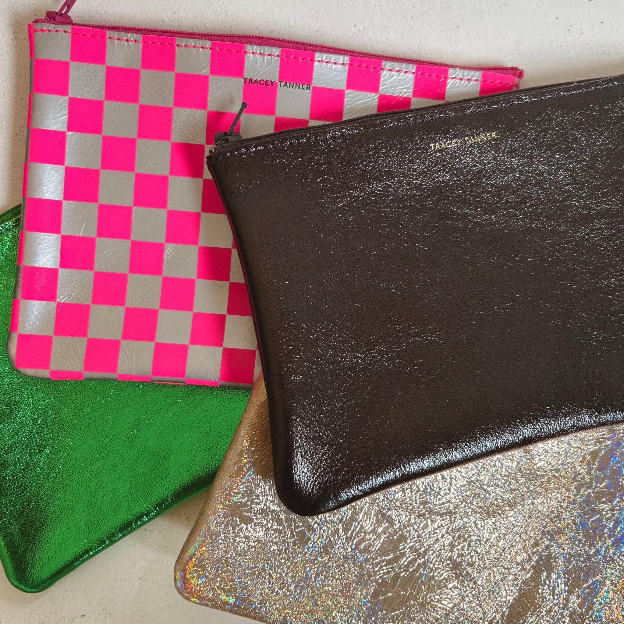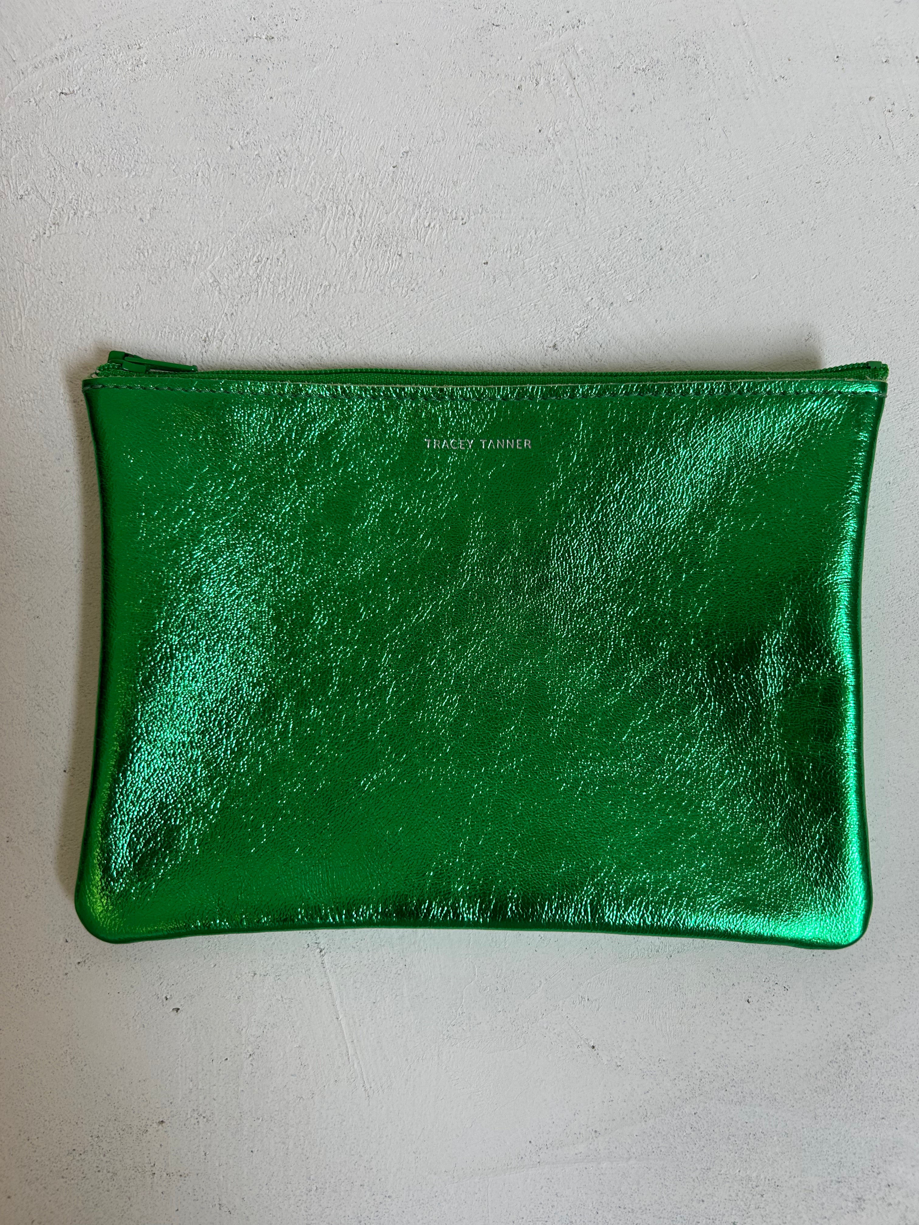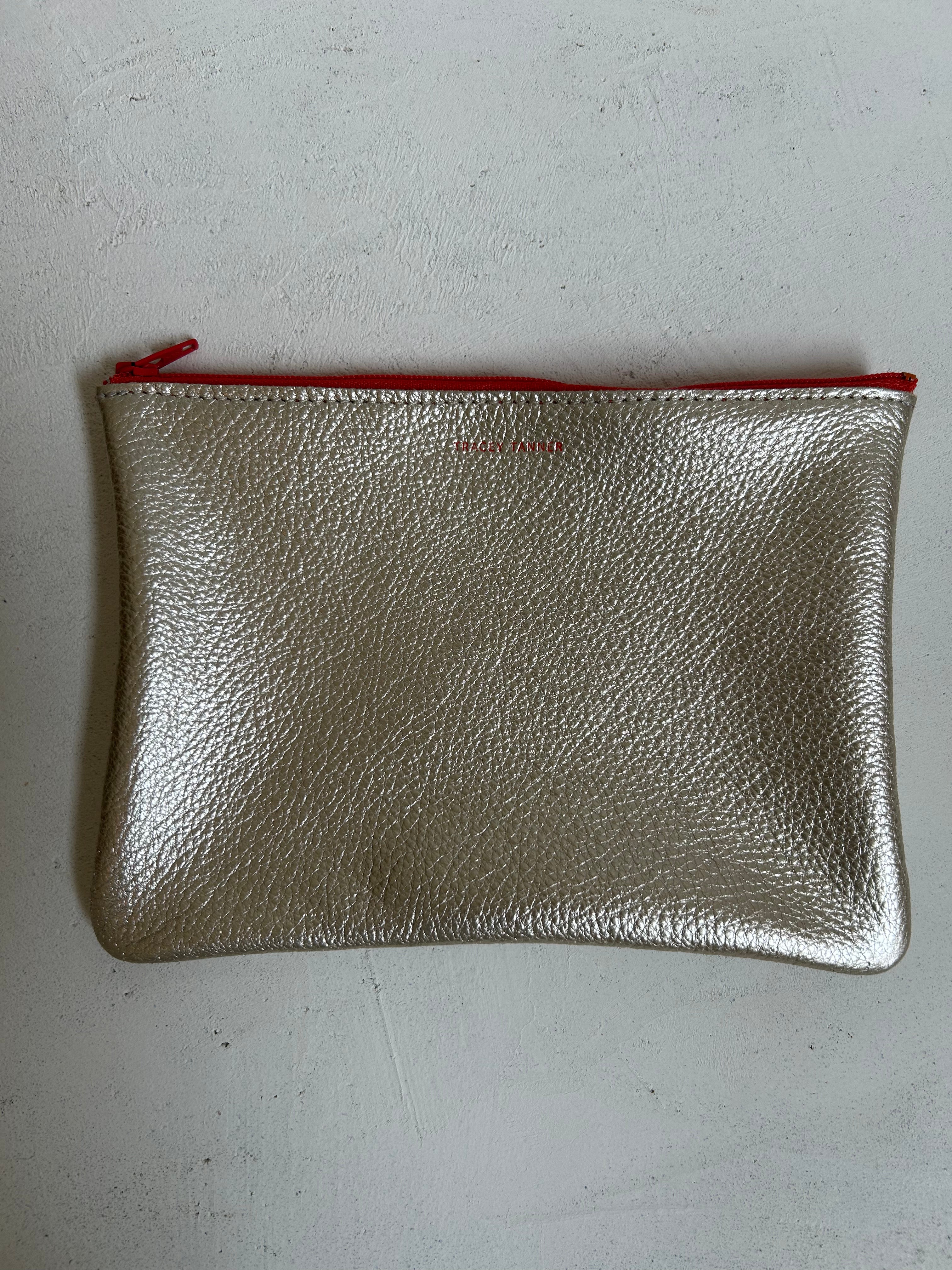 Leather flat zip-top pouch perfectly sized to carry your phone, cash, credit cards and/or cosmetics: Use it to organize your essentials in a larger bag or carry it alone as a clutch.