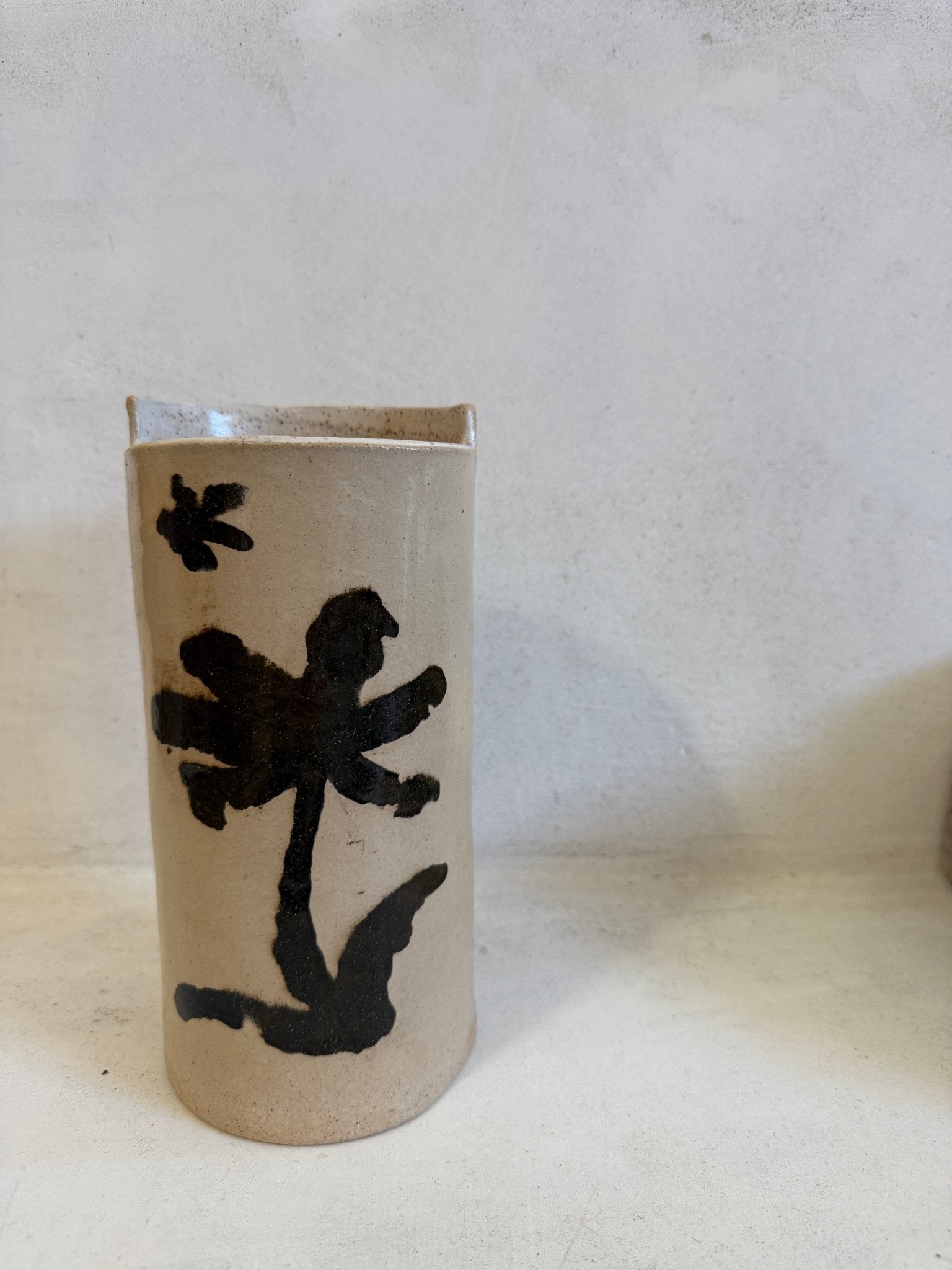 Cali is drawn to the beautiful asymmetrical qualities that the process of hand building produces.  She will often cut unique shapes out of clay and transpose it to another piece of clay, then compresses the two clays to create a uniform surface, which often looks as if the ceramics were painted.  Every piece is one of a kind as a result of using the technique of hand building.