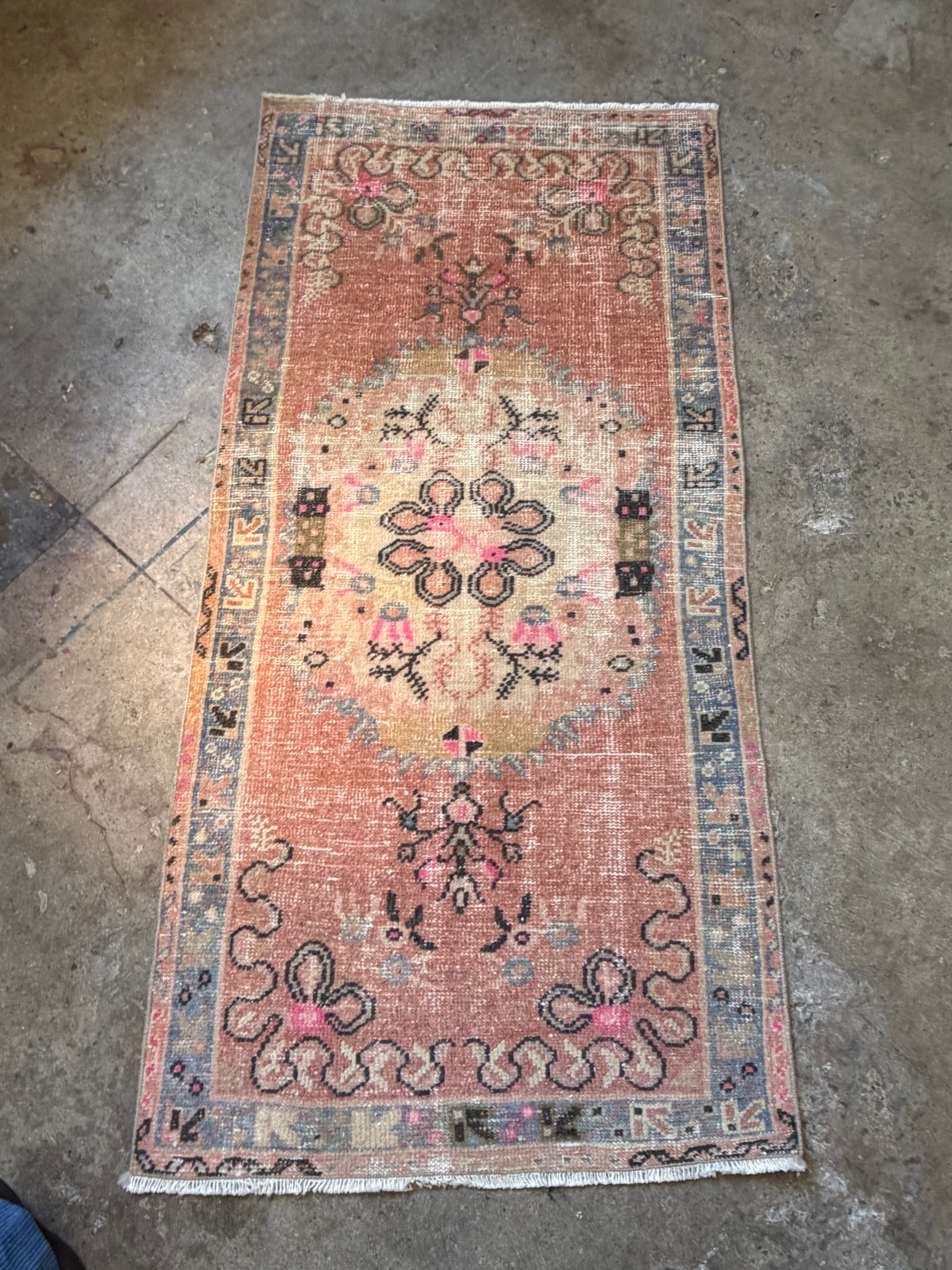 House No.23 vintage rug is a runner full of character and history. Its warm, timeless colors and detailed pattern bring life to any space. Small signs of wear or subtle color variations only add to its unique, one-of-a-kind story.