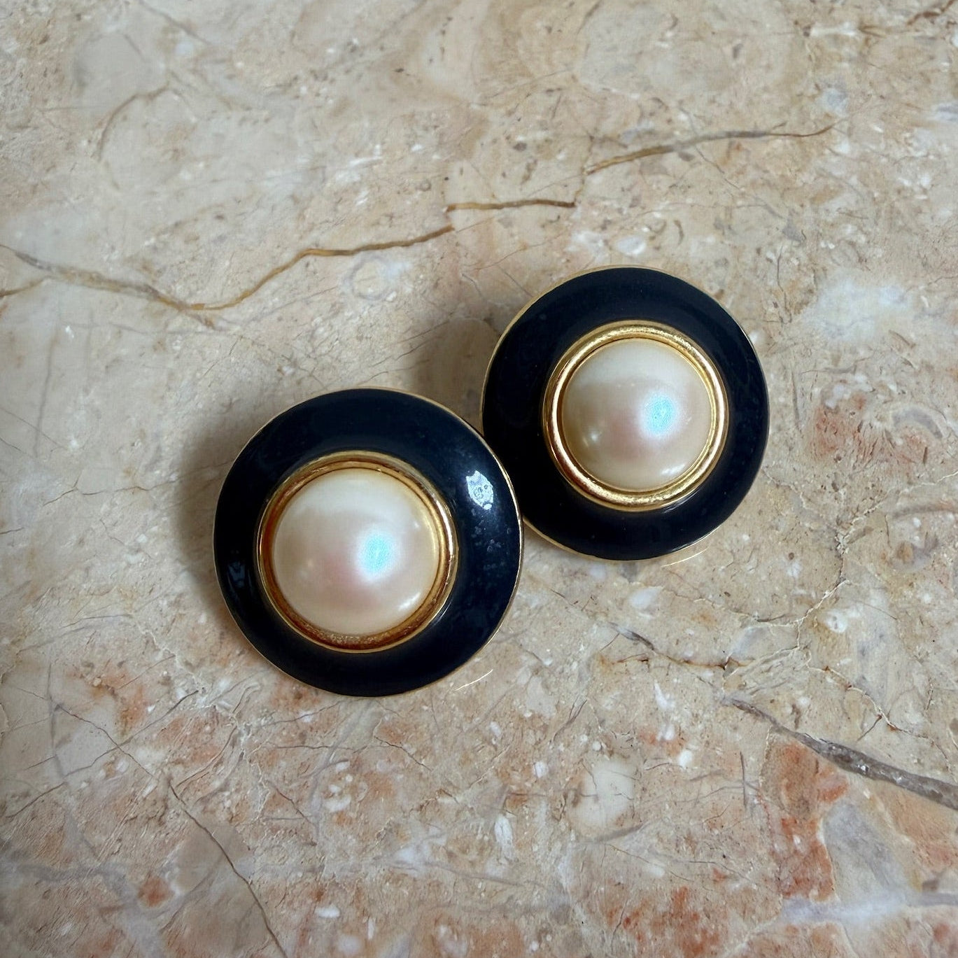 Lightweight and comfortable to wear, these vintage 90s earrings transition effortlessly from day to night. The combination of enamel and pearl adds contrast and dimension, making them perfect for both minimalist outfits and statement looks.
