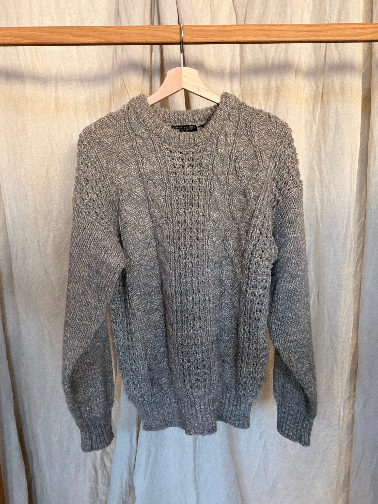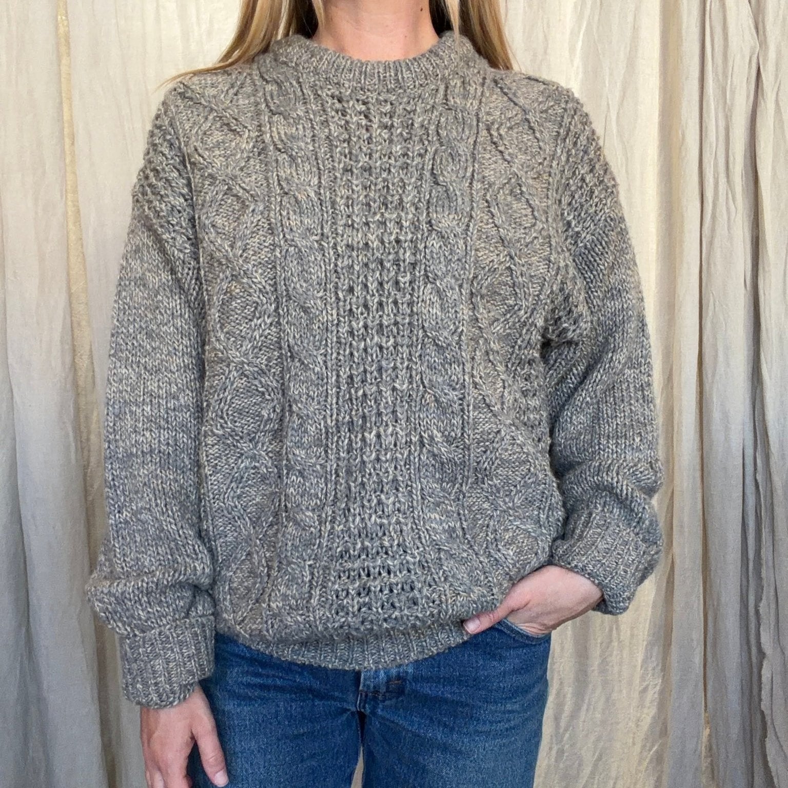 Vintage 1960’s marled grey crew neck sweater in a soft cable knit.