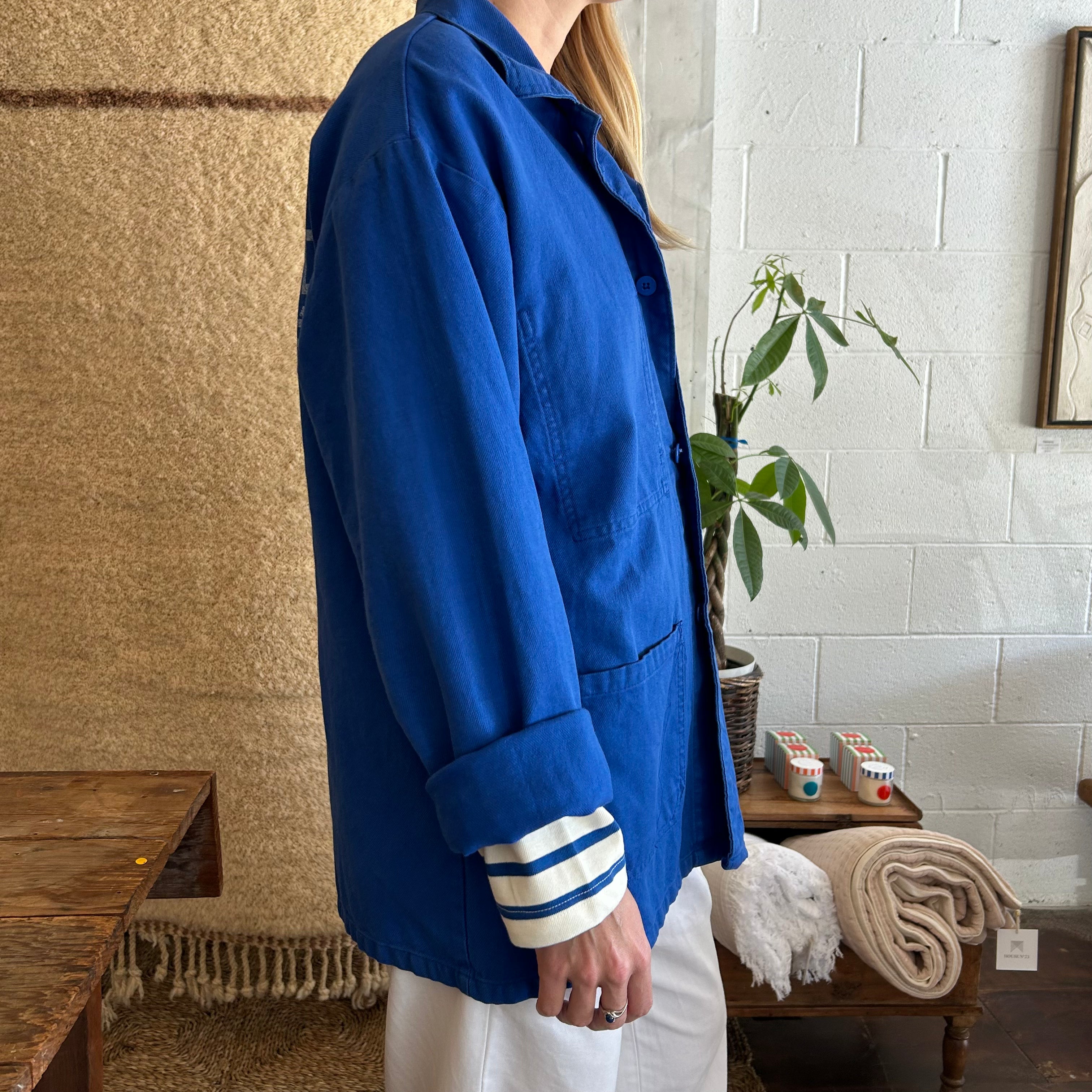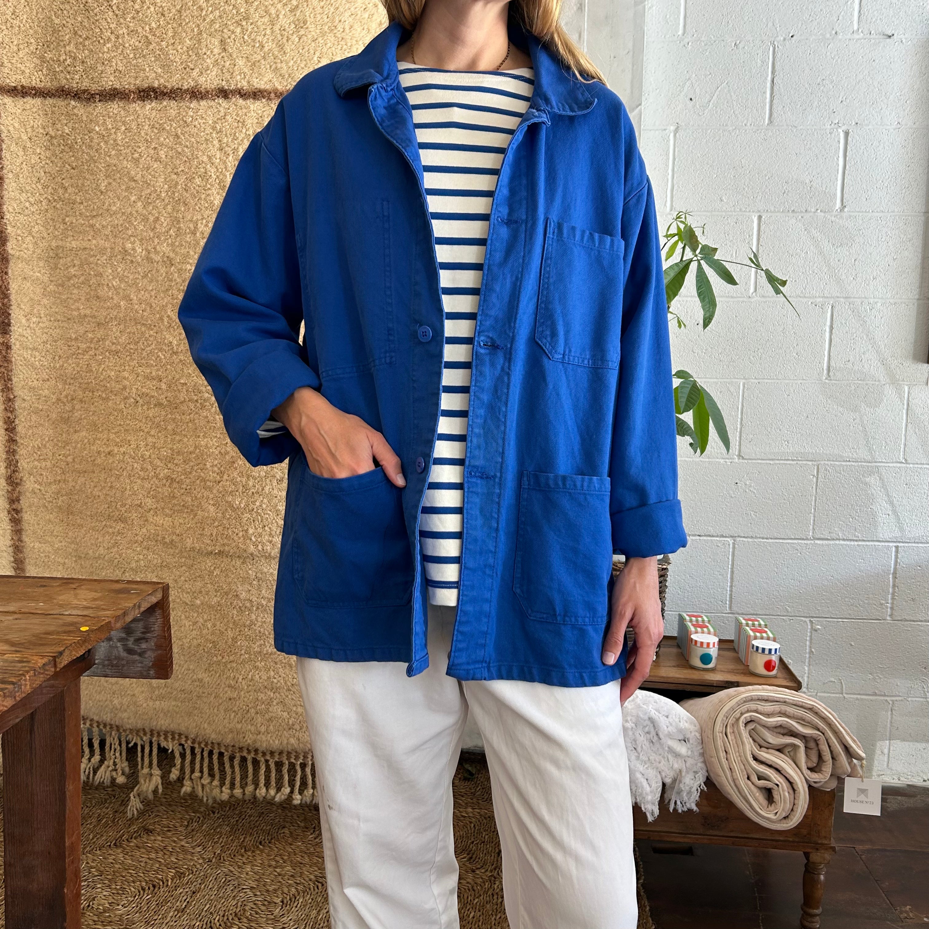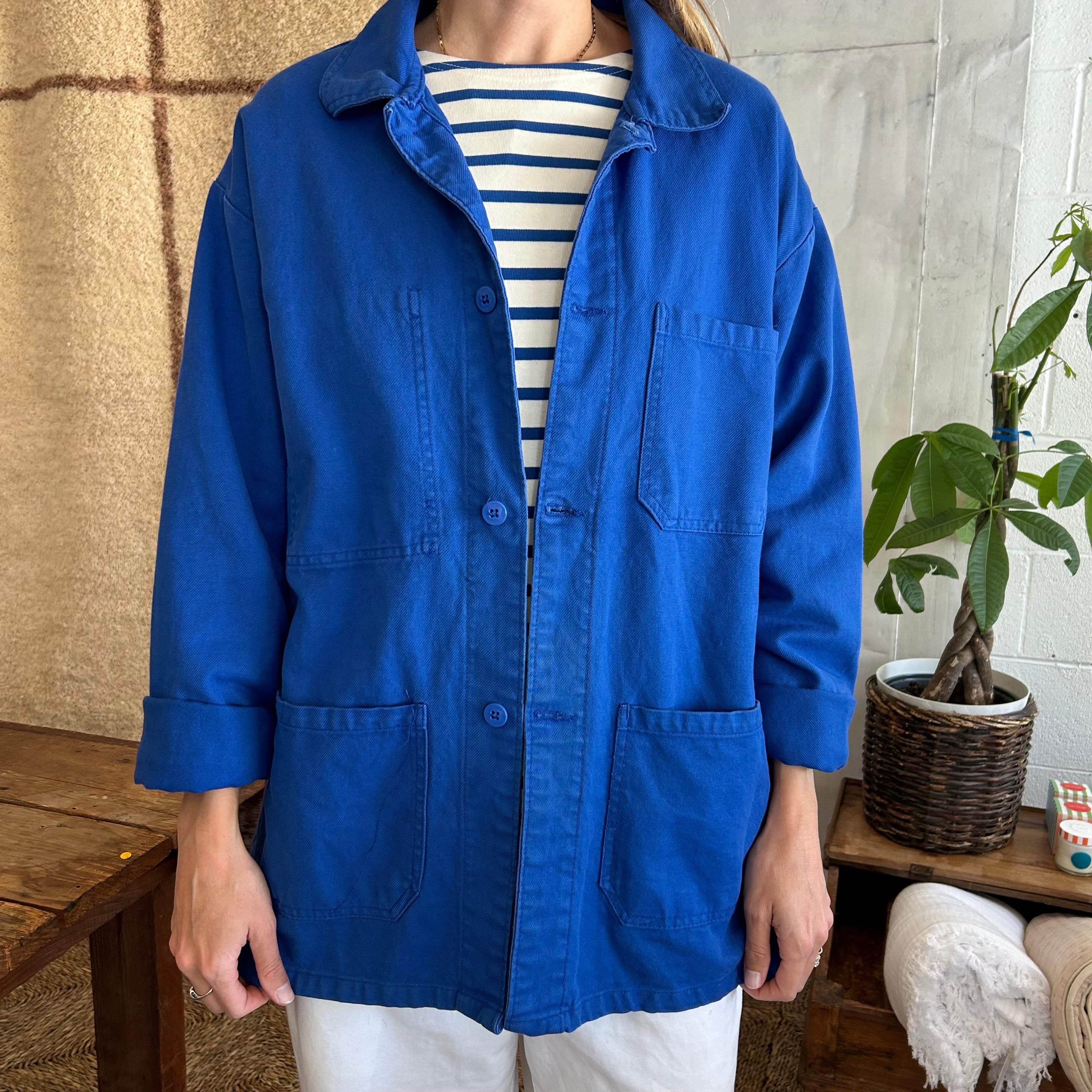 Sourced straight from France, this Vintage French Work Jacket features an oversized silhouette that makes layering seamless and stylish. Its timeless design pairs perfectly with both modern and classic wardrobes, offering comfort and versatility. Ideal for adding a refined, vintage touch to any outfit, this jacket blends heritage charm with contemporary ease. The ultimate fall jacket to pair with everything.