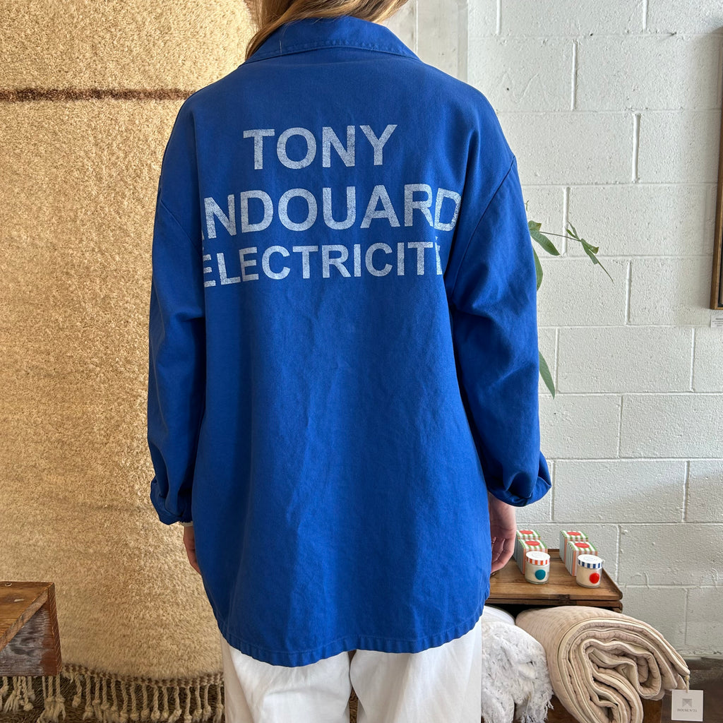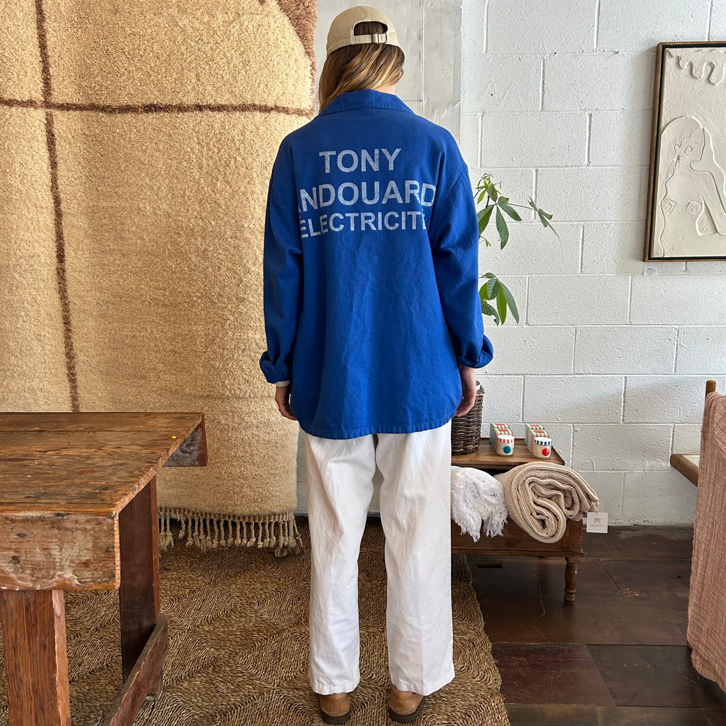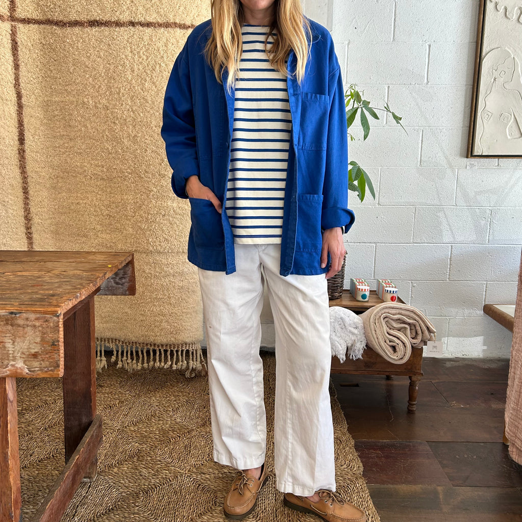 Sourced straight from France, this Vintage French Work Jacket features an oversized silhouette that makes layering seamless and stylish. Its timeless design pairs perfectly with both modern and classic wardrobes, offering comfort and versatility. Ideal for adding a refined, vintage touch to any outfit, this jacket blends heritage charm with contemporary ease. The ultimate fall jacket to pair with everything.